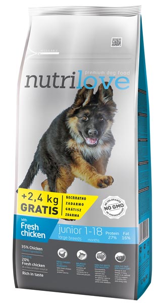 NUTRILOVE JUNIOR LARGE BREED L 12kg + 2,4kg + GRATIS