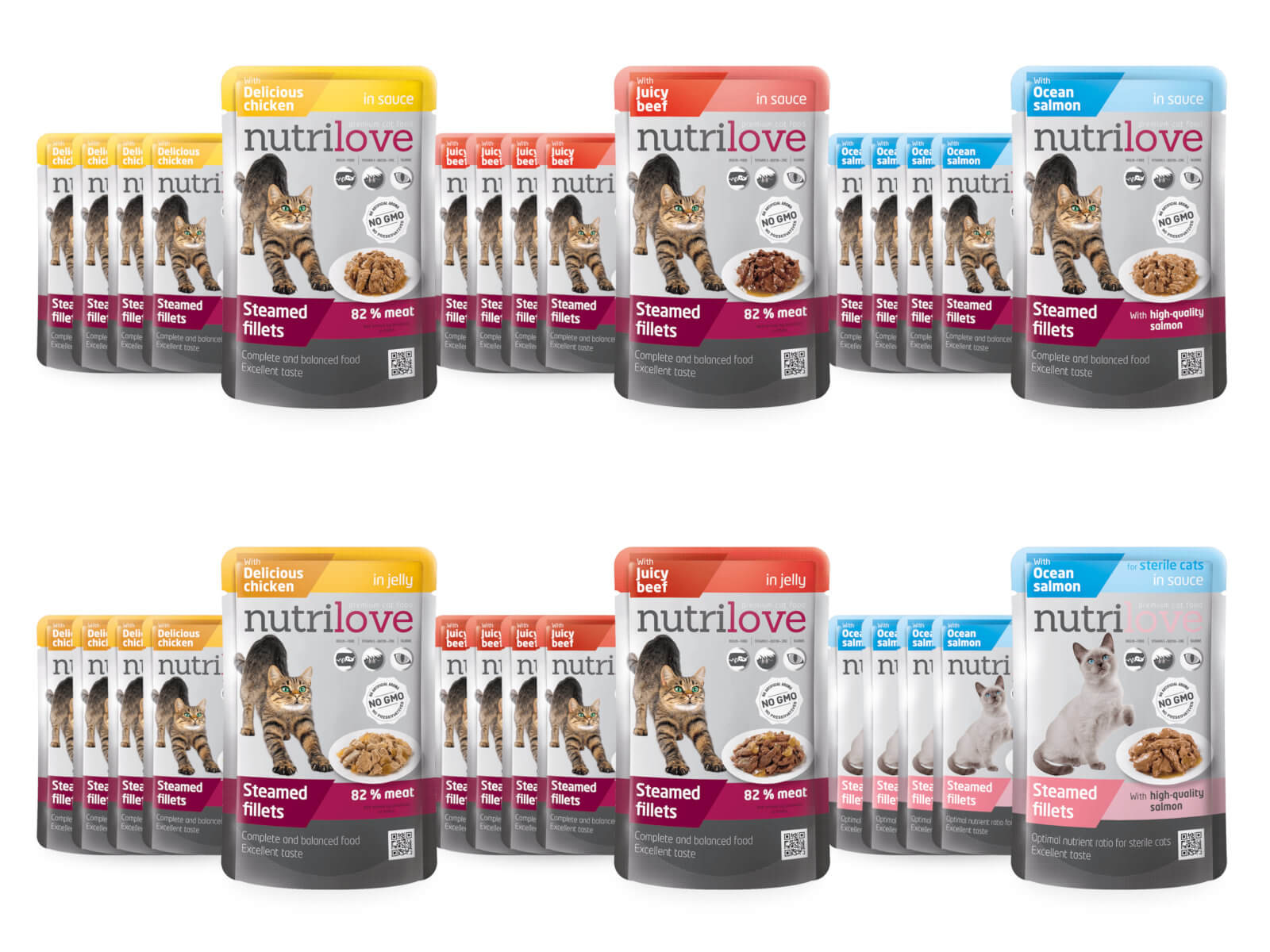Nutrilove – gotowane na parze soczyste fileciki to wysokiej jakości pełnoporcjowa karma dla dorosłych kotów. Twój kot doceni doskonały smak bez dodatku sztucznych aromatów i konserwantów. Wszystko czego Twój kot potrzebuje.