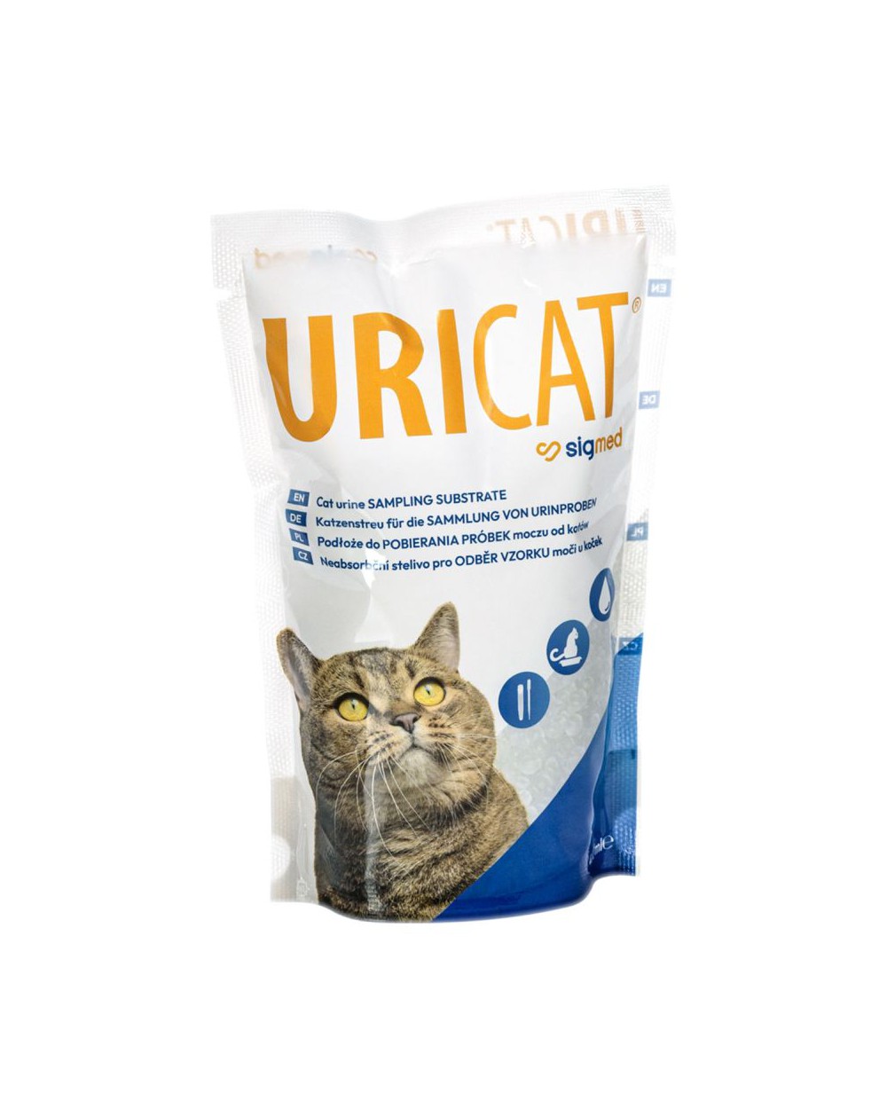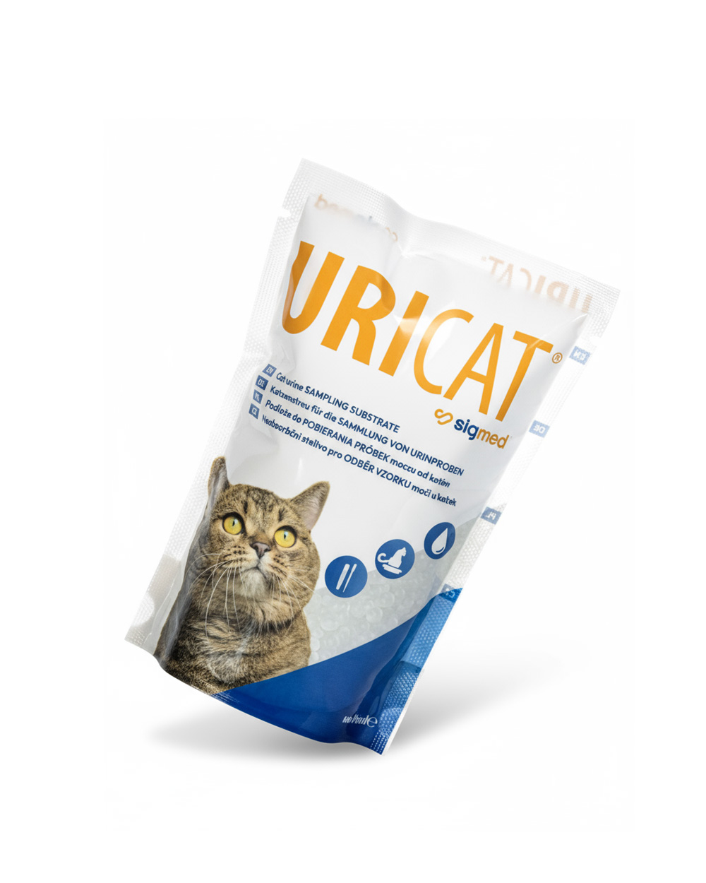 Uricat to innowacyjne, nieabsorbujące podłoże dla kotów, które umożliwia łatwe pobieranie próbek moczu do badań – bez potrzeby stosowania bolesnych i inwazyjnych metod.
